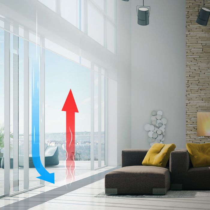 Ventiloconvectorul de pardoseala HC Line Minib este alegerea ideală pentru spații cu suprafețe vitrate mari, grădini de iarnă, birouri sau locuințe moderne unde estetica și eficiența sunt esențiale.